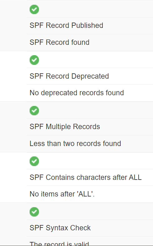 - 顯示檢測結果,如果都是綠色打勾的話,代表SPF檢測是OK的喔!