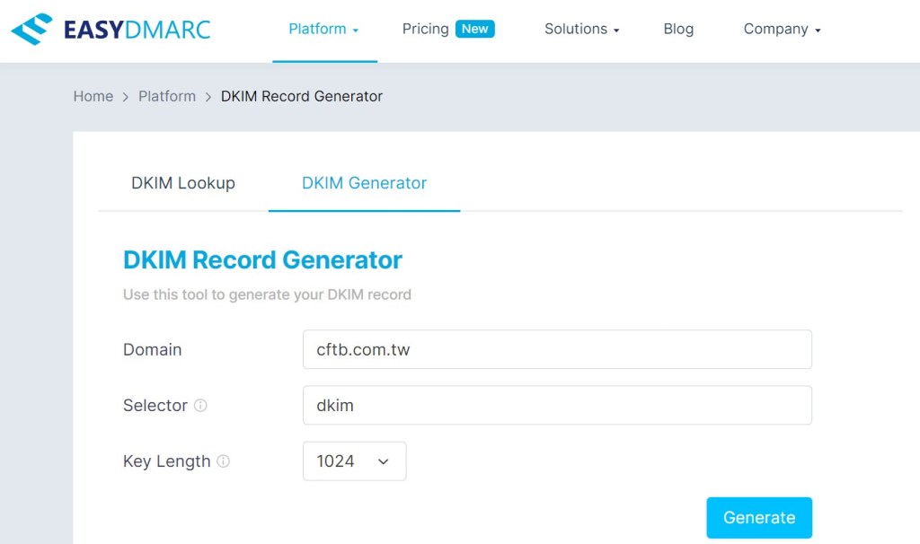建議可以到下列這個網站來產生 DKIM